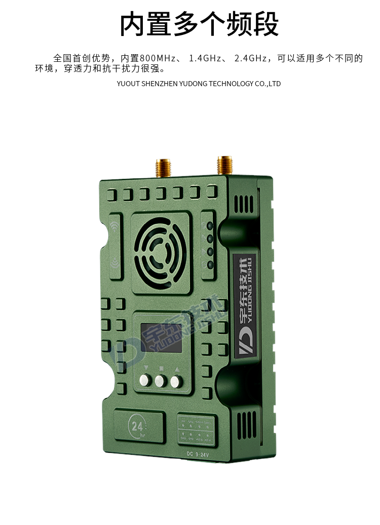 9、內置三個無線頻率:800MHz、 1.4GHz、 2.4GHz 液晶可設置